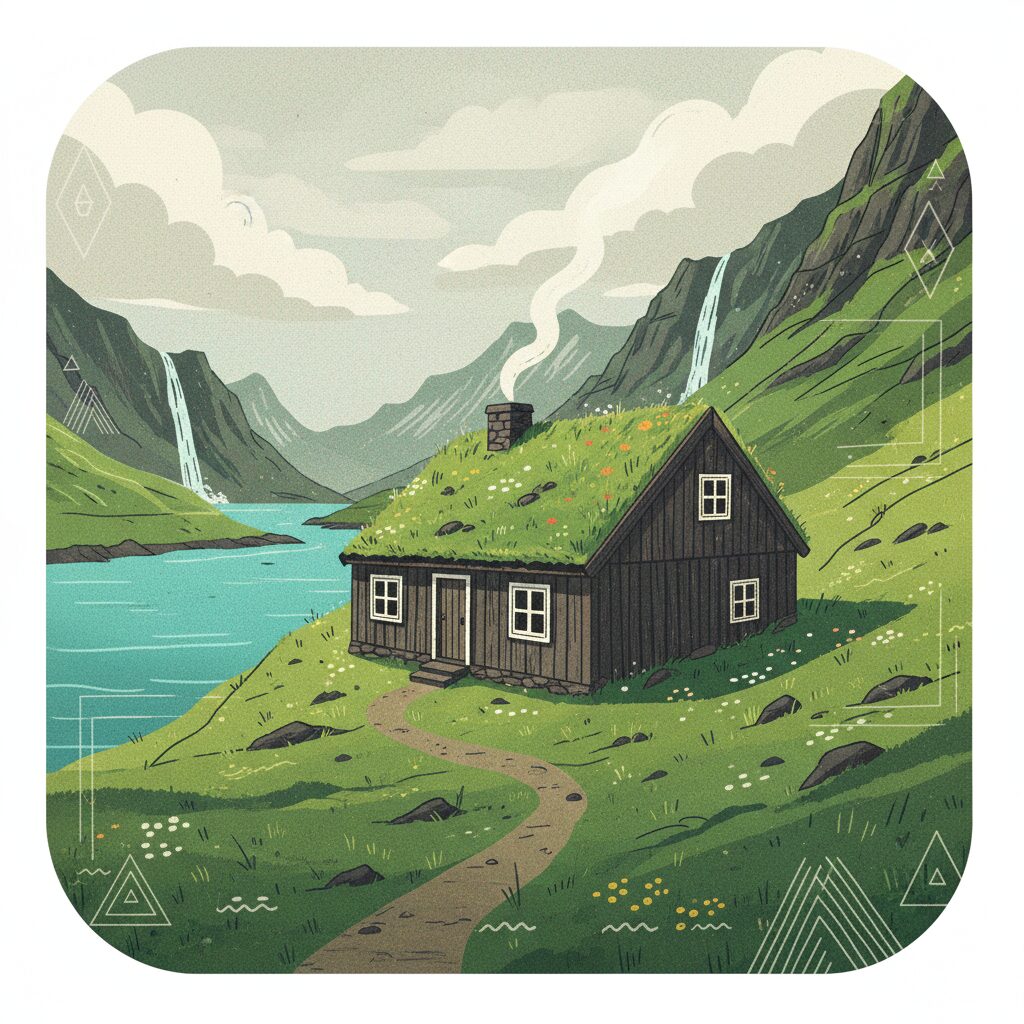 অবশেষে যখন গ্রামে পৌঁছালাম, তখন বিকেল গড়িয়ে সন্ধ্যা নামছিল। জিওগভ গ্রামটি ঠিক ছবির মতোই মনোরম। সমুদ্রের প্রাকৃতিক একটি খাঁড়ির ধারে কয়েকটি বাড়ি নিয়ে গড়ে ওঠা ছোট এক জনপদ। আর সেখানেই ছিল আমার পরবর্তী এক সপ্তাহের আশ্রয়—ঘাসের ছাদে ঢাকা, কালো কাঠের দেওয়ালের একটি ছোট্ট ঘর। বাড়িটির দিকে তাকিয়ে মনে হচ্ছিল যেন সময়ের চাকা ঘুরে আমি কয়েক শতাব্দী পেছনে ফিরে গিয়েছি। এ ধরনের বাড়িগুলোকে স্থানীয় ভাষায় ‘Roykstova’ বলা হয়, যা ভাইকিং যুগ থেকে ফ্যারো দ্বীপপুঞ্জের স্থাপত্যের পরিচায়ক।