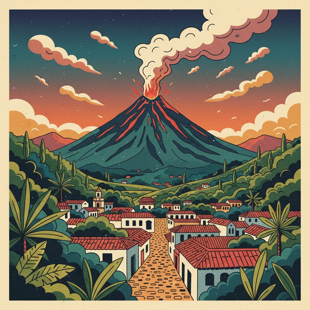 অ্যান্টিগুয়া শহরটি তিন বিশাল আগ্নেয়গিরি—আগুয়া, ফুয়েগো এবং আকাতেনাঙ্গো—দ্বারা囲ৃত। শহরের যেকোনো দিক থেকে তাকালে এই বিশাল আগ্নেয়গিরিগুলোর মহিমাময় উপস্থিতি চোখে পড়ে। এদের মধ্যে ফুয়েগো একটি সক্রিয় আগ্নেয়গিরি, যা প্রায় ঘণ্টায় ঘণ্টায় লাভা নির্গত করে। এর উপস্থিতি শহরের জীবনে এক অনন্য মাত্রা যোগ করেছে। দিনের আলোতে শান্ত ও কোমল এই আগ্নেয়গিরিগুলো রাতের আঁধারে ভয়ঙ্কর সুন্দর হয়ে ওঠে। বিশেষত আকাতেনাঙ্গোর চূড়া থেকে রাতের বেলা ফুয়েগোর লাভা নির্গমনের দৃশ্য দেখা একটি অবিস্মরণীয় অভিজ্ঞতা। পর্বতারোহী হিসেবে এটি আমার জীবনের অন্যতম শ্রেষ্ঠ মুহূর্ত ছিল। আগুনের লাল স্রোতটি রাতের কালো আকাশের উপর এক পবিত্র ছবি আঁকে, যা দেখে প্রকৃতির মহিমার সামনে নিজের ছোটত্ব বুঝতে হয়।